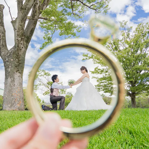 琵琶湖でリゾートウェディング のようなフォトウェディングや、緑豊かな森の中で幻想的なフォトウェディングが人気です。